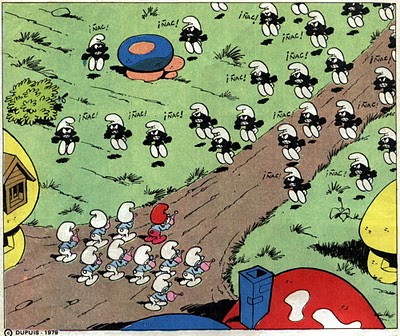 Un puntazo esta entrada. Da para pensar un buen rato. Que exista la posibilidad que algo tan ñoño como los Pitufos pueda ser el origen de los zombies resulta como menos curioso.