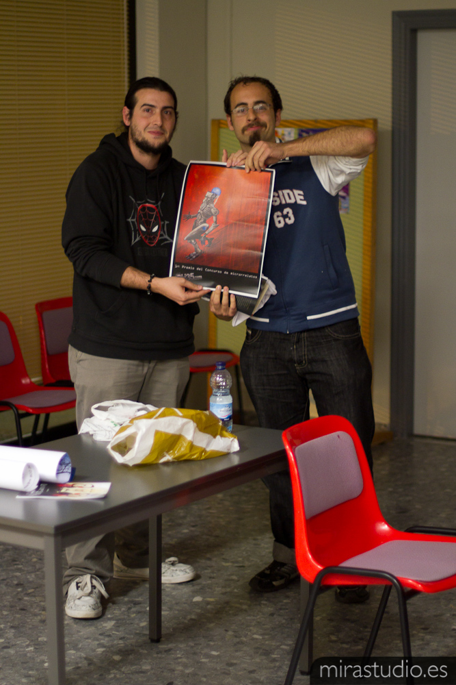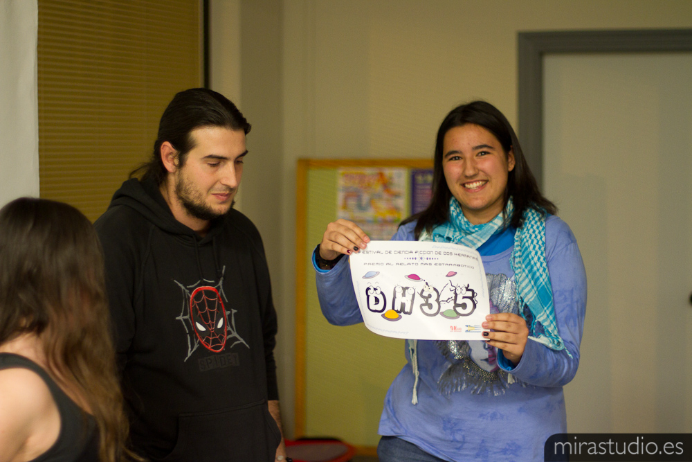 Para finalizar, y cumpliendo con lo prometido, pasamos a la entrega de premios del «I Certamen de Microrelatos DH35» en el que los agraciados (con libros, peliculas y diplomas varios) fueron los siguientes participantes: