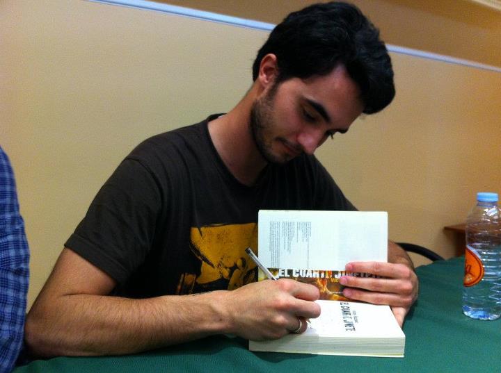 Víctor Blazquez dedicandome mi ejemplar de «El Cuarto Jinete» |