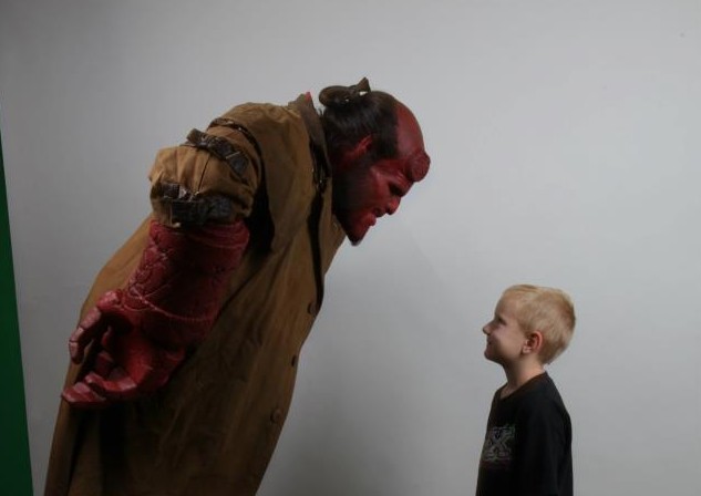 Ron Perlman no dudo un instante en enfundarse el traje de Hellboy para hacer feliz a este pequeño. |