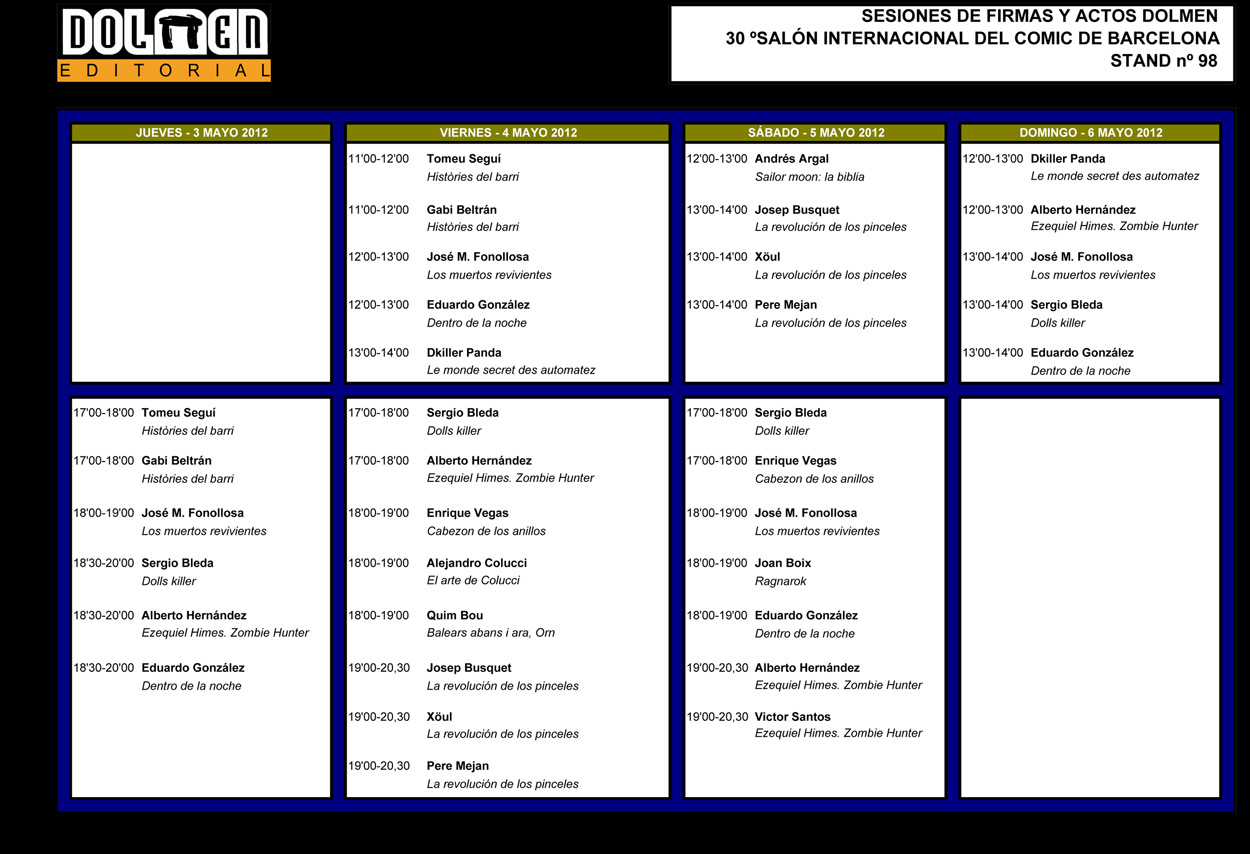 Salón del Cómic BCN 2012: Horario de firmas Dolmen